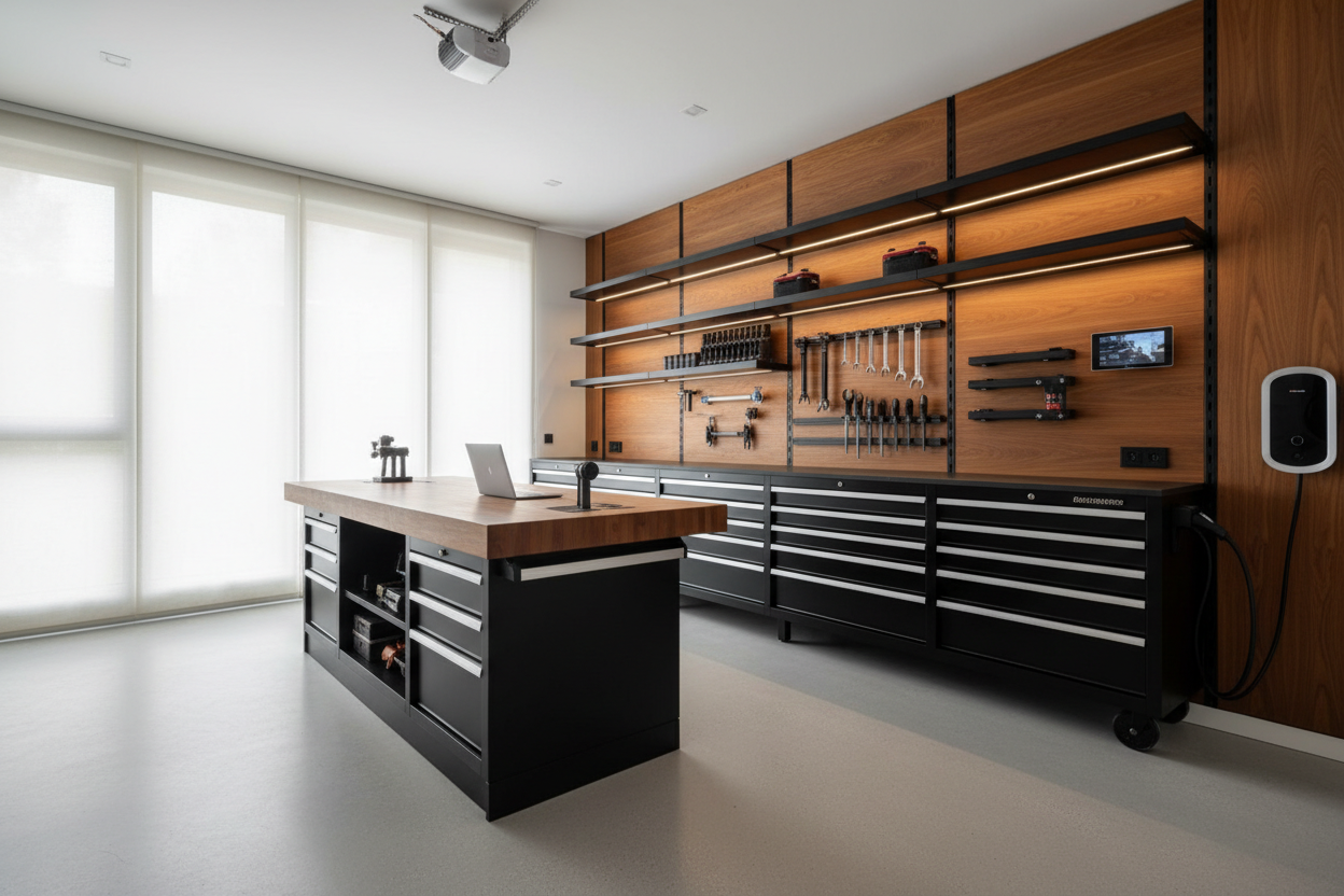 Reclaim your space with wall-mounted elegance and modular precision. Create a garage that's as refined as it is functional, where every tool has its place and every detail reflects your commitment to quality.